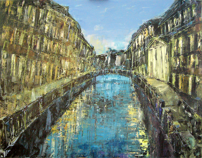 abspiegelung des sonnenscheins 100x85 cm öl/lwd.2005