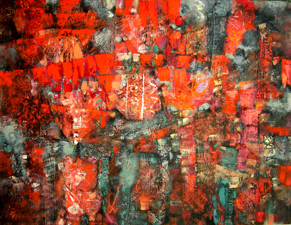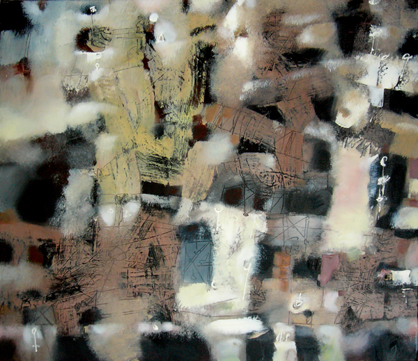 ergebnis des urknalls 115x140 cm öl/lwd.2004
