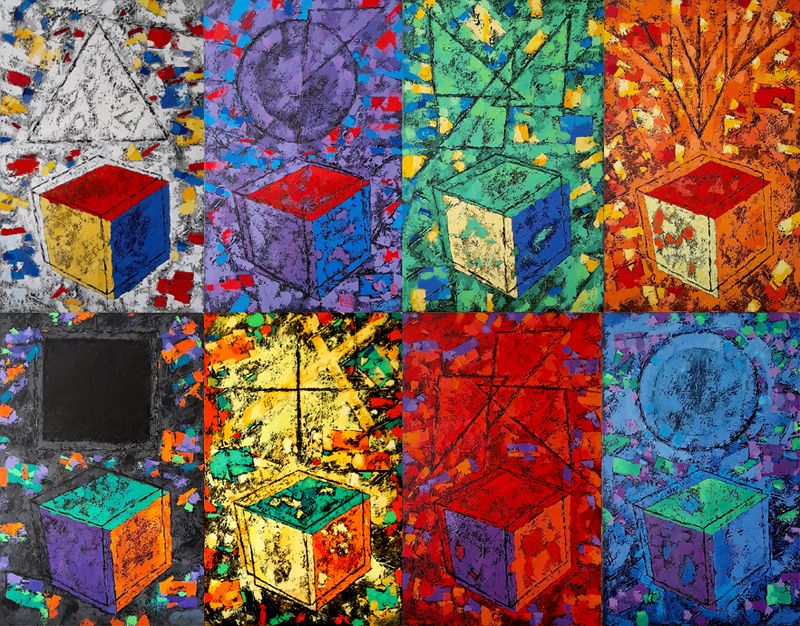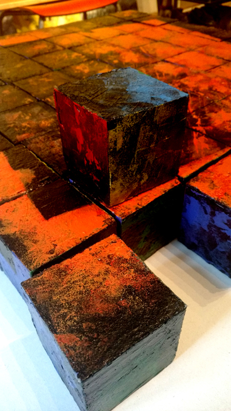 unendliches quadrat/fragment, 64 würfeln je 8x8x8 cm acryl, modelpaste/storopor 2023