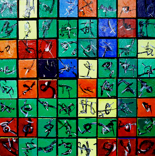 video- und audiogrammatika 70x70 cm öl/lwd.2010