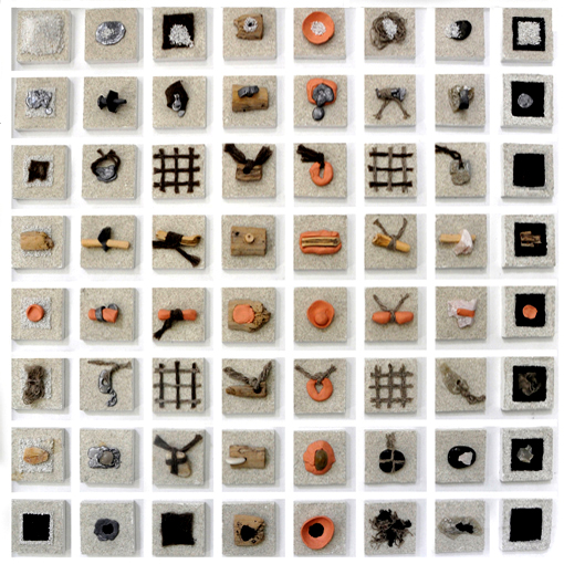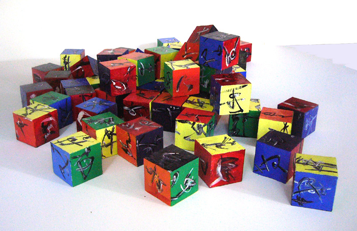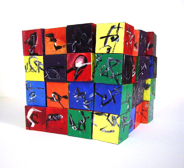 objekt mit unendlicher kombinatorik 64 würfeln je 8x8x8 cm acryl, modelpaste/storopor 2007