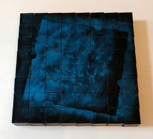 unendliches quadrat/schwarz-blau kombinatorische variante, 64 würfeln je 8x8x8 cm acryl, modelpaste/storopor 2023