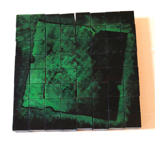unendliches quadrat/schwarz-grün kombinatorische variante, 64 würfeln je 8x8x8 cm acryl, modelpaste/storopor 2023