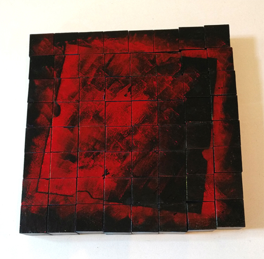 unendliches quadrat/schwarz-rot kombinatorische variante 64 würfeln je 8x8x8 cm acryl, modelpaste/storopor 2023