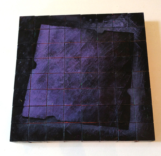 unendliches quadrat/schwarz-violett kombinatorische variante, 64 würfeln je 8x8x8 cm acryl, modelpaste/storopor 2023