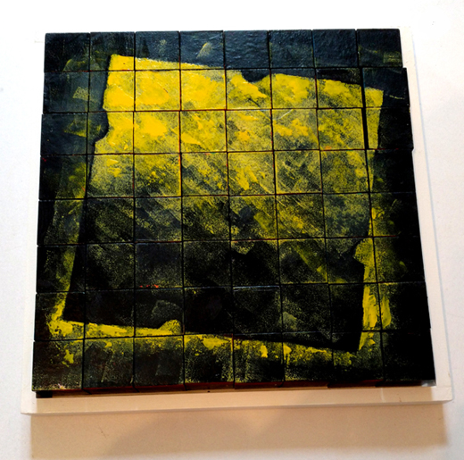 unendliches quadrat/schwarz-gelb kombinatorische variante 64 würfeln je 8x8x8 cm acryl, modelpaste/storopor 2023