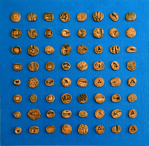 abdrücke auf ton matrix erde metall stein wolle leinen holz ton 90x90 cm2007