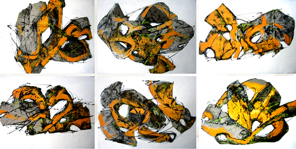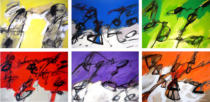 6 bewegungen 6 teile je 75x95 cm öl/lwd.2005