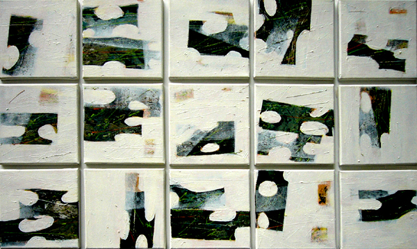 grüner vogel und weißes loch 15 teile je 15x15 cm öl/lwd.2012