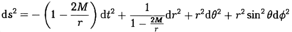 Schwarze Löcher, die keine Ladung tragen Q = 0 und nicht rotieren L = 0, werden durch die Schwarzschild-Metrik beschrieben.