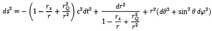 Schwarze Löcher, die geladen sind Q ≠ 0 und rotieren L ≠ 0, werden durch die Kerr-Newman-Metrik