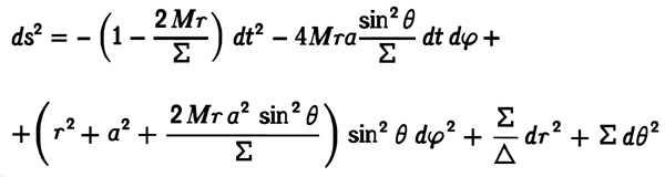 Schwarze Löcher, die keine Ladung tragen Q = 0 und rotieren L ≠ 0, werden durch die Kerr-Metrik