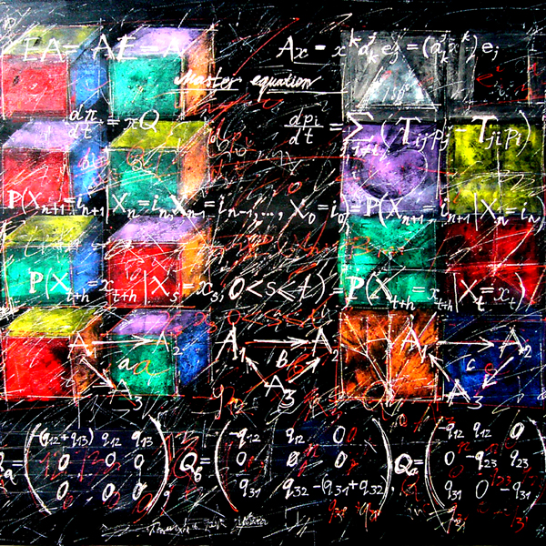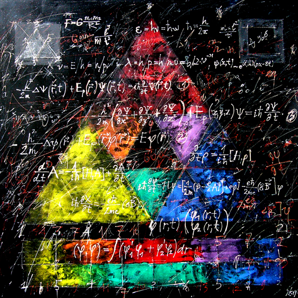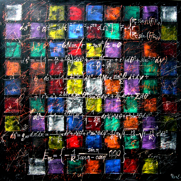 Die weißen Formeln auf dem schwarzen Quadrat.