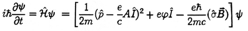 Die Pauli-Gleichung. Sie beschreibt die zeitliche Entwicklung eines geladenen Spin-1/2-Teilchens.