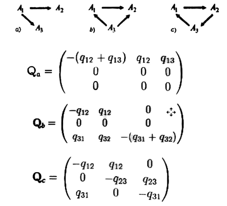 Die Wahrscheinlichkeit der Ereignisse stellen die Matrizen der Übergänge der Ereignisse dar.