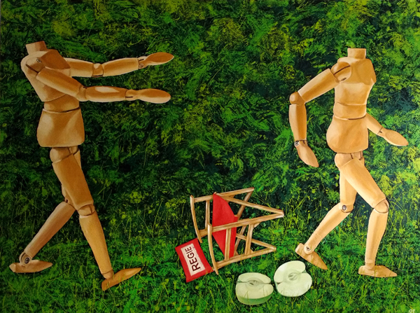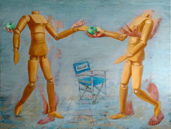 Bild 43: Eva wollte nicht ewig eine kopflose Marionette sein. Öl auf Lwd, 200x150 cm, 2012. Galina Skryl