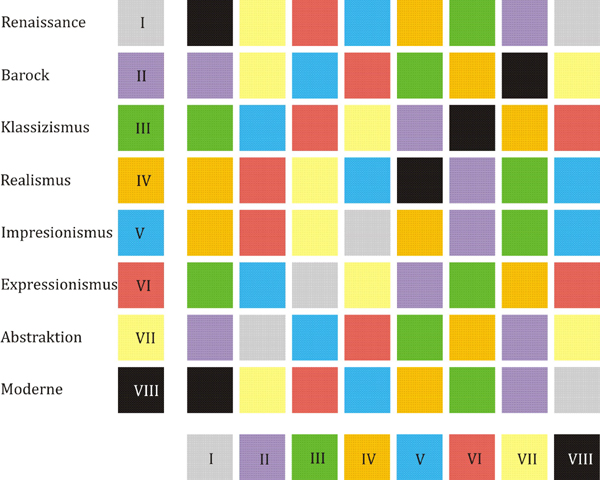 Von der Renaissance bis zur Moderne kann man 8 Hauptrichtungen klassifizieren, die acht