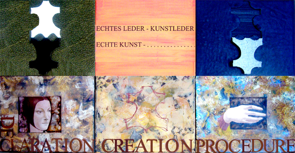 Bild 12: Selbstporträt. Echtes Leder und Kunstleder. 6 Bilder, je 30x20 cm. Öl auf Leinwand. 2012. |
