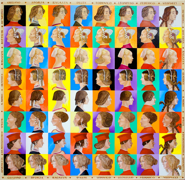 8 Porträts der Renaissance kann man als acht Zustände der Farbe darstellen: weiß, schwarz, gelb,