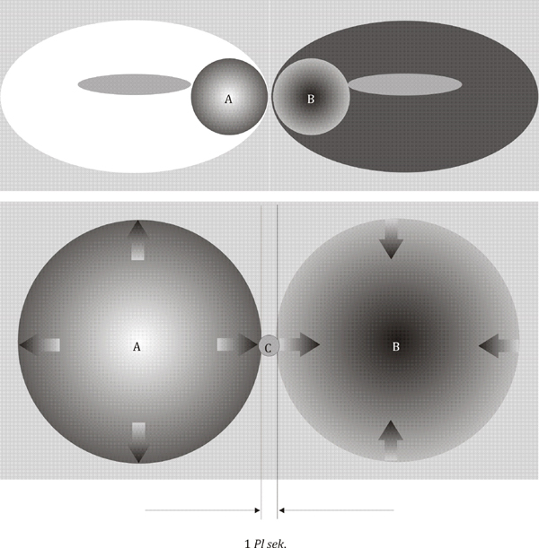 aber als Ergebnis der Gravitationswechselwirkung beginnt dann die entgegengesetzte Kompression.