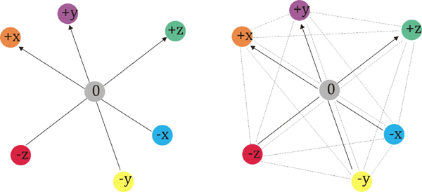 Wenn wir alle sieben Punkte (±0; -y; -z; -x; +y; + z; +x) des Koordinatensystems (dreidimensionales Objekt)